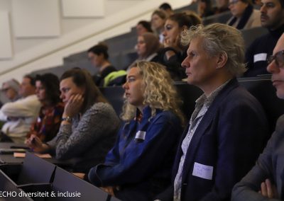 Mary Tupan, directeur van ECHO, gaf een breder perspectief en legde uit hoe veranderende demografische en sociale factoren de kansen van studenten beïnvloeden. Samen met Niek Putman, coördinator werkprogramma tegen stagediscriminatie vanuit ECHO, deelde ze met de deelnemers hoe intersectioneel beleid, ook kruispuntdenken genoemd, kan bijdragen aan de bewustwording over specifieke uitsluitingsmechanismen gerelateerd aan een gelaagdheid van identiteitskenmerken en daarmee inzichten voor meer gelijke kansen op stages voor iedereen. Voor meer informatie over handelingskaders om intersectioneel beleid te initieren en de daarvoor ontwikkelde tools (routekaart voor studenten en analysekader voor professionals), verwijzen we u graag naar het online stagediscriminatie platform.